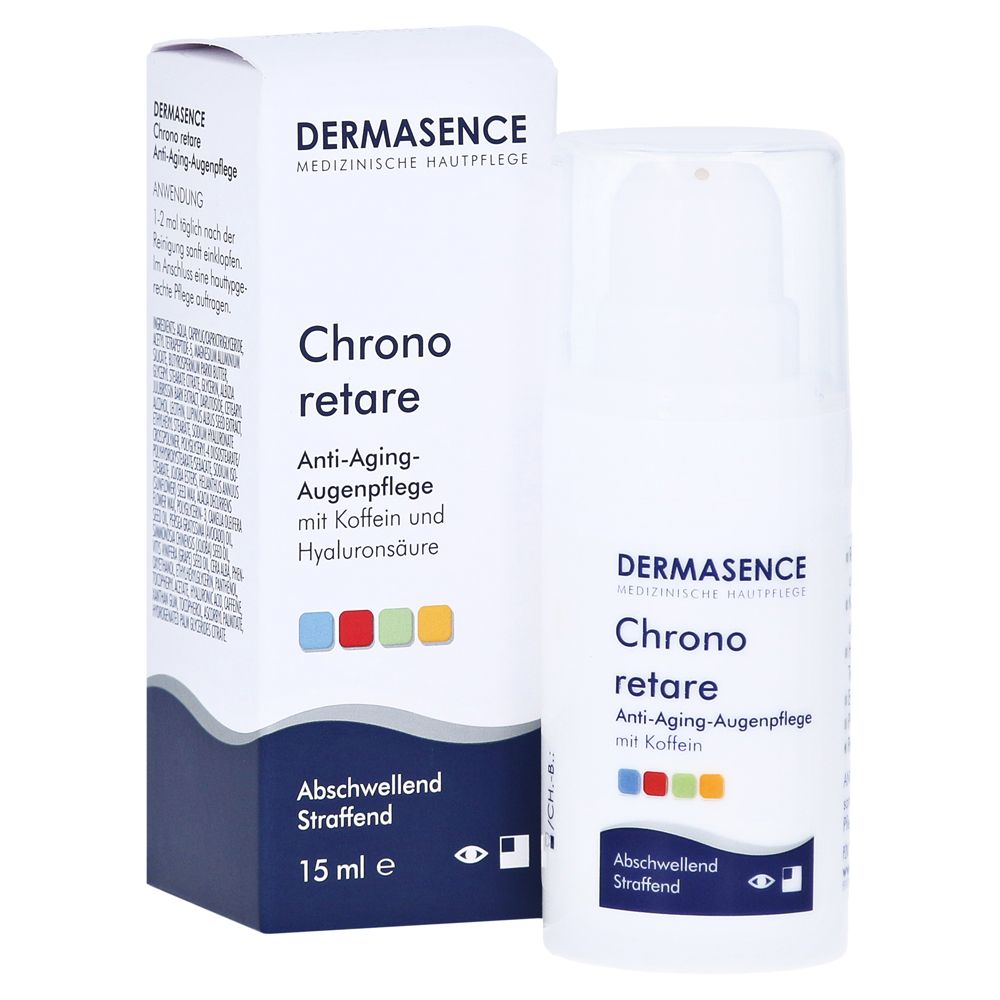 DERMASENCE Chrono retare anti-aging oogzorg bevat een complex van cafeïne en anti-aging peptiden. In combinatie met hyaluronzuur voorzien ze de gevoelige oogzone van waardevol vocht,