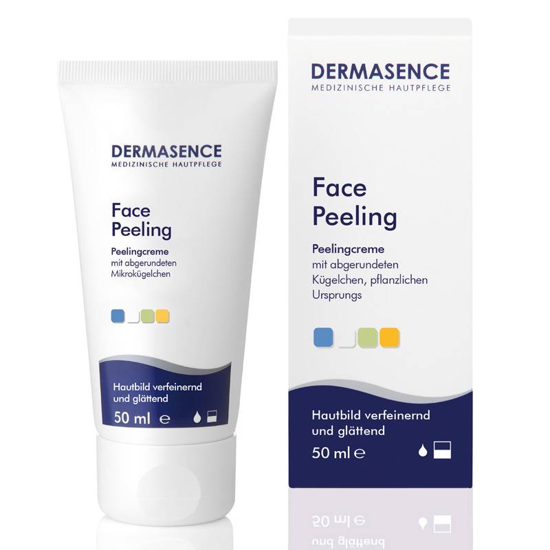 Dermasence Face Peeling crème bevat afgeronde, milieuvriendelijke slijpdeeltjes. Deze zorgen voor het effectief afschuren van overtollige hoorncellen. Goed verdraaglijke, reinigende ingrediënten zorgen ook voor het verwijderen van vuil- en oliedeeltjes.